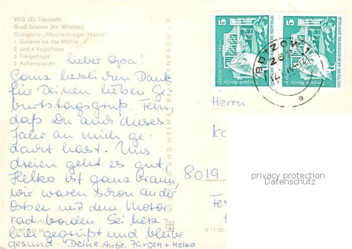 73859811 Gross Stieten Gross Stieten Gaststätte Mecklenburger Mühle Gastraum Mühle postalisch gelaufen Erhaltung siehe scans [WerneD78] alte Postkarte Wern Katcode 11110013058042