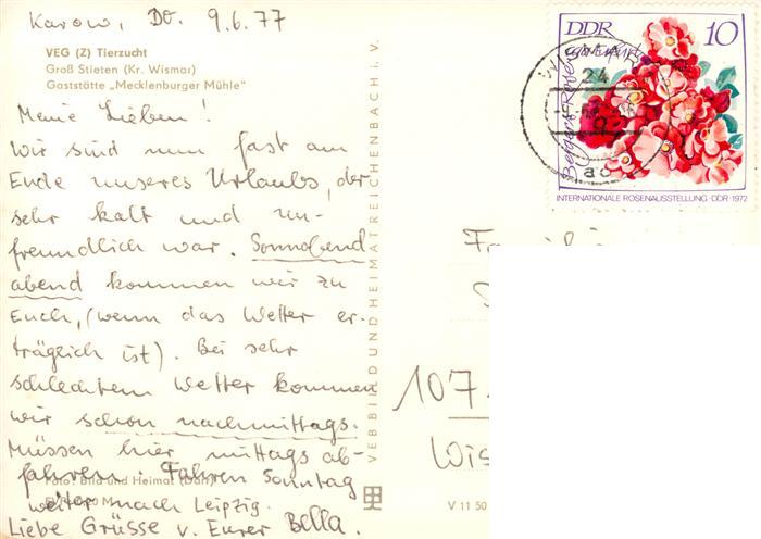 73923715 Gross-Stieten Mecklenburg-Vorpommern Gaststaette Mecklenburger Muehle postalisch gelaufen Erhaltung siehe scans [WerneD78] alte Postkarte Wern Katcode 11110013058042