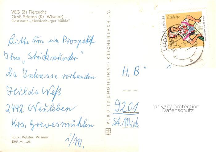73093107 alte Postkarte Gross Stieten VEG Tierzucht Windmuehle Restaurant Mecklenburger-Muehle postalisch gelaufen Erhaltung siehe scans [LiesaD40] KatCode: 11110013058042