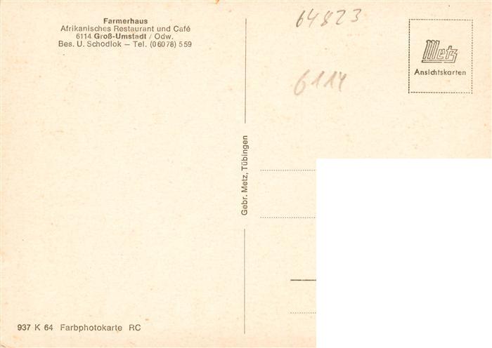 73880564 Gross-Umstadt Farmerhaus Afrikanisches Restaurant und Cafe postalisch nicht gelaufen Erhaltung siehe scans [WerneD78] KatCode: 11110006432010