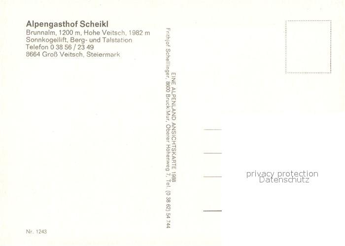 73321561 Gross Veitsch Alpengasthof Scheikl Brunnalm postalisch nicht gelaufen Erhaltung siehe scans [PaolaD17] KatCode: 11390223061315