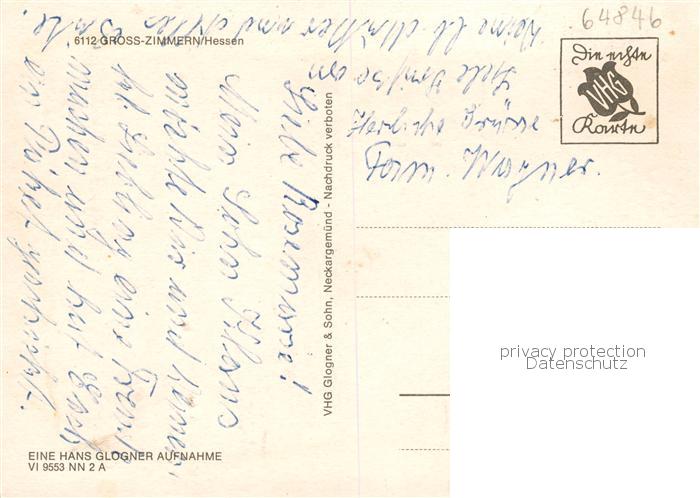 73853658 alte Postkarte Gross-Zimmern Hessen Kirche Rathaus Schulen postalisch gelaufen Erhaltung siehe scans [WerneD78] KatCode: 11110006432011