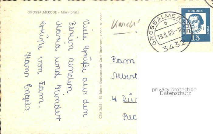 72451568 alte Postkarte Grossalmerode Marktplatz postalisch gelaufen Erhaltung siehe scans KatCode: 11110006636004