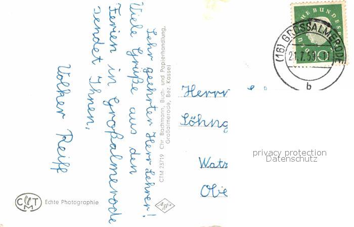 72771256 alte Postkarte Grossalmerode Rathaus Berliner Strasse Katholische Evangelische Kirche Marktplatz postalisch gelaufen Erhaltung siehe scans [AndreD76] KatCode: 11110006636004
