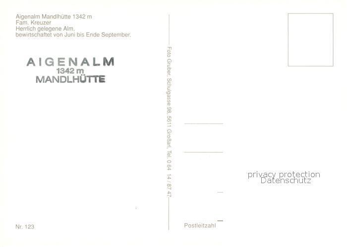 73687184 Grossarl Aigenalm Mandlhuette Gaststube Wasserfall Landschaftspanorama postalisch nicht gelaufen Erhaltung siehe scans [FriedD77] KatCode: 11390322050411