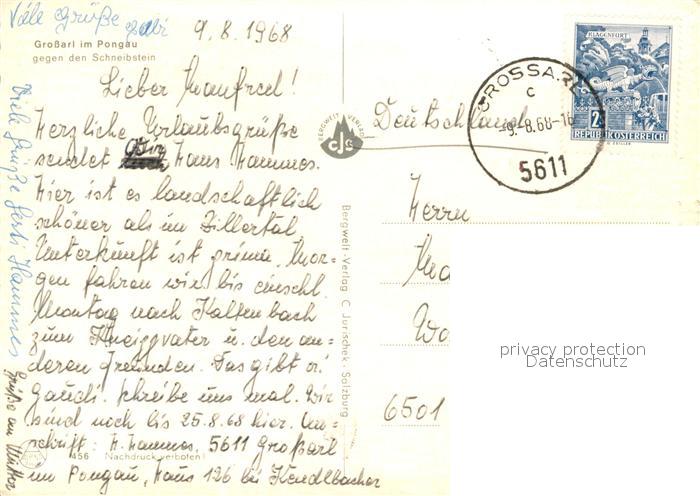 73355947 alte Postkarte Grossarl gegen den Schneibstein Berchtesgadener Alpen postalisch gelaufen Erhaltung siehe scans [FriedD77] KatCode: 11390322050411