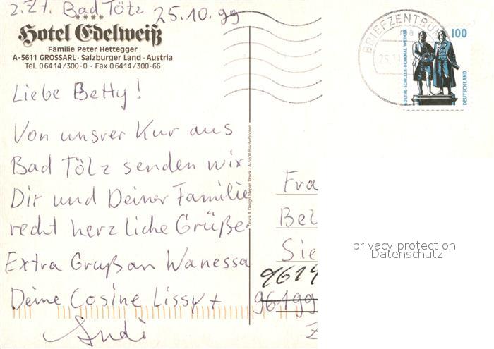 12909754 alte Postkarte Grossarl Hotel Edelweiss postalisch gelaufen Erhaltung siehe scans [AndreD76] KatCode: 11390322050411