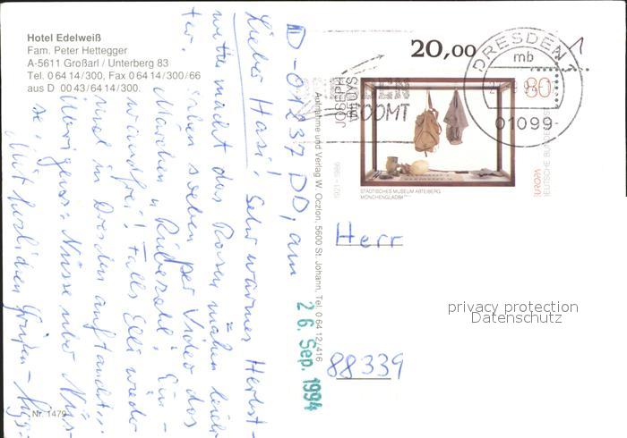 71822359 alte Postkarte Grossarl Hotel Edelweiss postalisch gelaufen Erhaltung siehe scans KatCode: 11390322050411