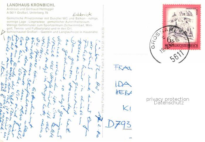72754040 alte Postkarte Grossarl Landhaue Kronbichl postalisch gelaufen Erhaltung siehe scans [LiesaD40] KatCode: 11390322050411