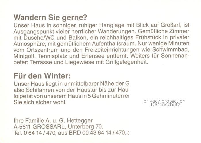 13234805 Grossarl Landhaus Kronbichl postalisch nicht gelaufen Werbekarte (keine Postkarte) Erhaltung siehe scans [FriedD77] KatCode: 11390322050411