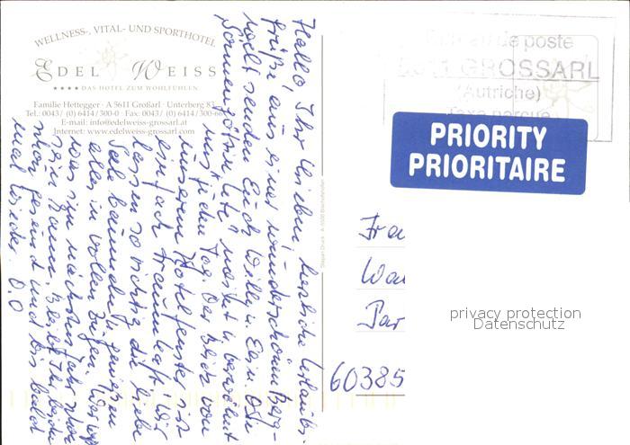 42923739 alte Postkarte Grossarl Sporthotel Edelweiss Wellness Details postalisch gelaufen Erhaltung siehe scans [WerneD48] KatCode: 11390322050411