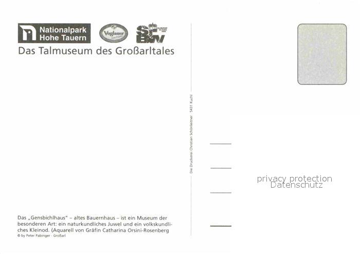 72917235 Grossarl Talmuseum Gensbichlhaus postalisch nicht gelaufen Erhaltung siehe scans [KathaD81] KatCode: 11390322050411