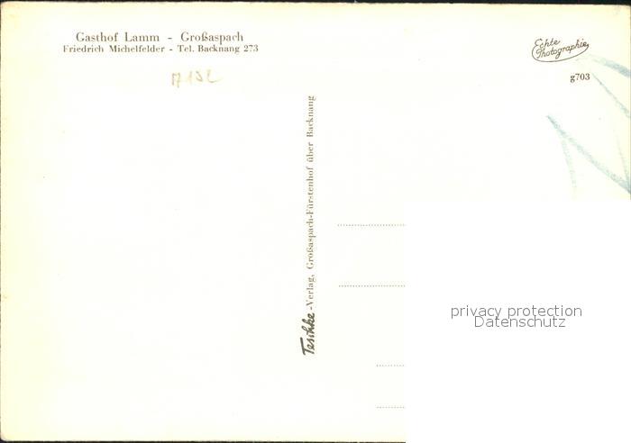31720820 Grossaspach Gasthaus Restaurant Lamm postalisch nicht gelaufen Erhaltung siehe scans KatCode: 11110008119087