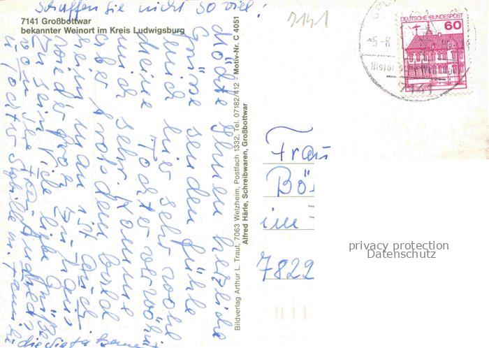 74053142 alte Postkarte Grossbottwar Ludwigsburg BW Rathaus Stadttor Winzerhausen Wunnenstein Stadtmauer Hof und Lambach mit Burg Lichtenberg postalisch gelaufen Erhaltung siehe scans [WerneD78] KatCode: 11110008118021