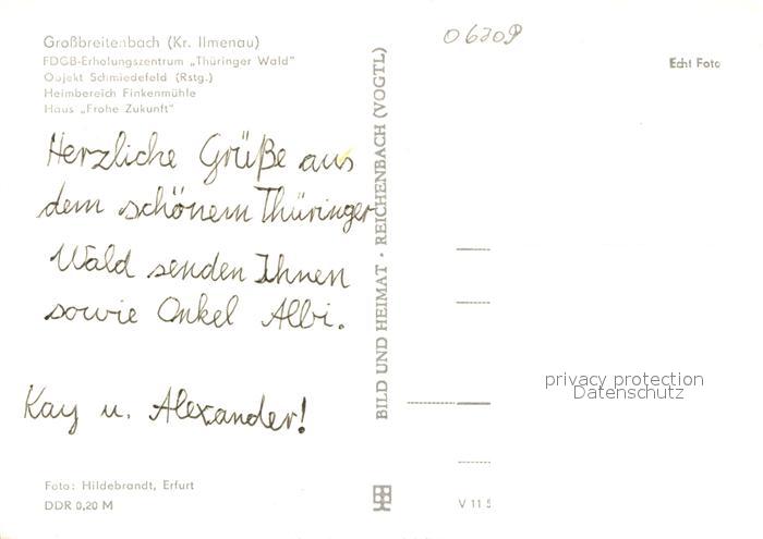 72925646 Grossbreitenbach Thueringen Erholungszentrum Thueringer Wald Haus Frohe Zukunft postalisch nicht gelaufen Erhaltung siehe scans [PaolaD17] KatCode: 11110016070025