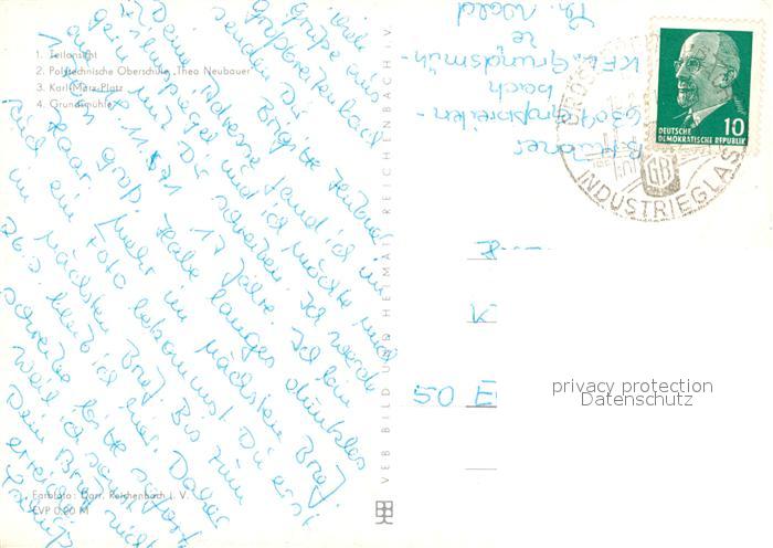 73306475 alte Postkarte Grossbreitenbach Thueringen Teilansicht Polytechnische Oberschule Theo Neubauer Karl Marx Platz Grundsmuehle postalisch gelaufen Erhaltung siehe scans [FriedD77] KatCode: 11110016070025