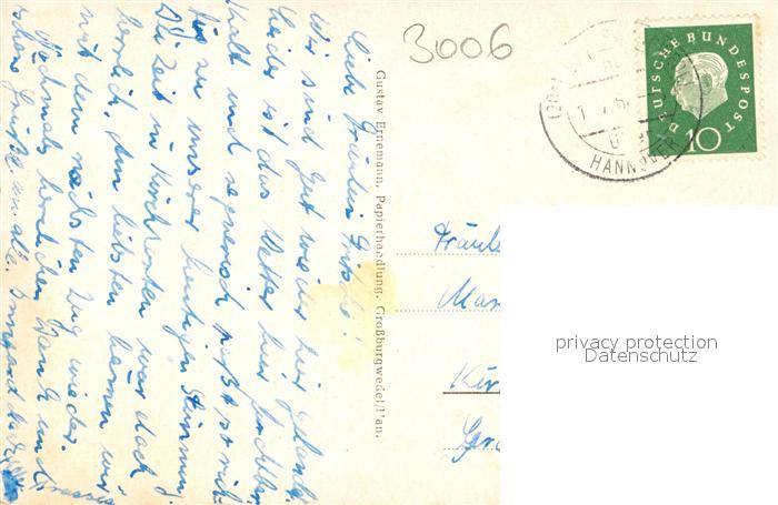 43287036 alte Postkarte Grossburgwedel Dorfmotiv Kirche Kreissparkasse Landwirtschaftliche Kreisberufsschule postalisch gelaufen Erhaltung siehe scans [FriedD77] KatCode: 11110003241004
