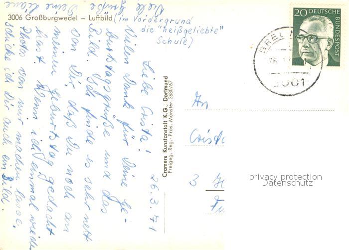73784267 alte Postkarte Grossburgwedel Fliegeraufnahme postalisch gelaufen Erhaltung siehe scans [WerneD78] KatCode: 11110003241004