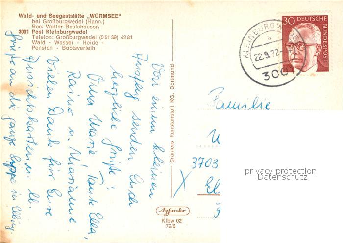 73126849 alte Postkarte Grossburgwedel Wald- und Seegaststaette Wuermsee Badestrand postalisch gelaufen Erhaltung siehe scans [FriedD77] KatCode: 11110003241004