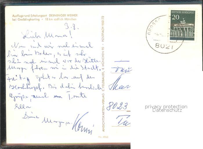 72129426 alte Postkarte Grossdingharting Cafe und Pension Am Deininger Weiher Terrasse postalisch gelaufen Erhaltung siehe scans KatCode: 11110009184144