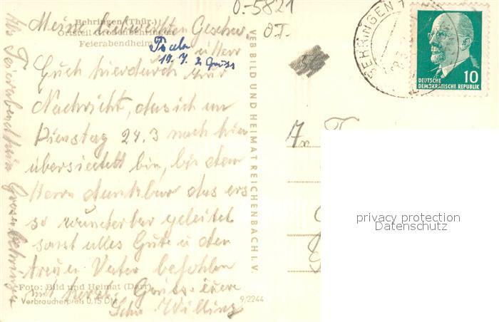 73693665 alte Postkarte Grossenbehringen Feierabendheim postalisch gelaufen Erhaltung siehe scans [FriedD77] KatCode: 11110016063095