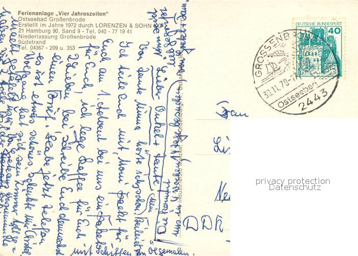 73711982 alte Postkarte Grossenbrode Ostseebad Ferienanlage Vier Jahreszeiten Fliegeraufnahme postalisch gelaufen Erhaltung siehe scans [WerneD78] KatCode: 11110001055017