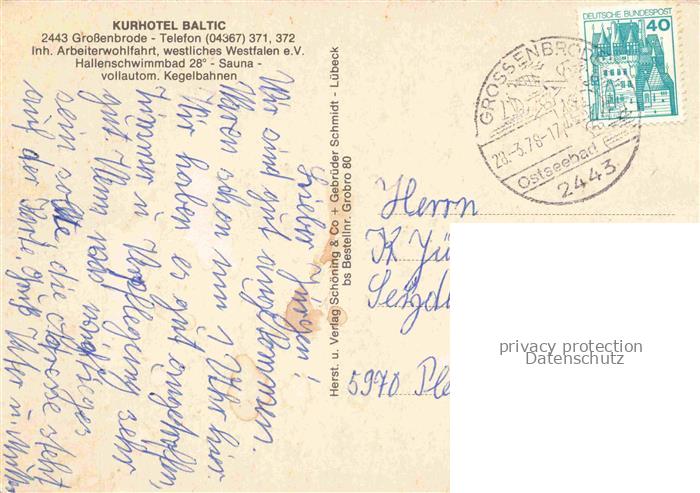 74036166 alte Postkarte Grossenbrode Ostseebad Kurhotel Baltic Restaurant Bar Aufenthaltsraum Hallenbad postalisch gelaufen Erhaltung siehe scans [FriedD77] KatCode: 11110001055017
