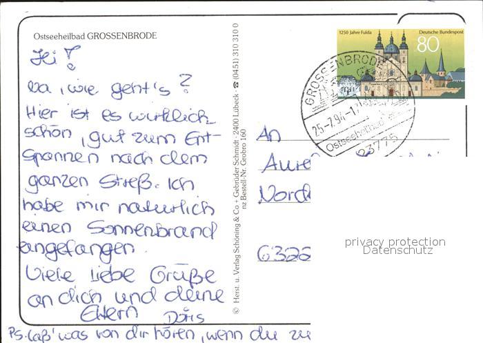 72444602 alte Postkarte Grossenbrode Ostseebad Ostseeheilbad Strand Hafen Platz Hotel Restaurant postalisch gelaufen Erhaltung siehe scans KatCode: 11110001055017