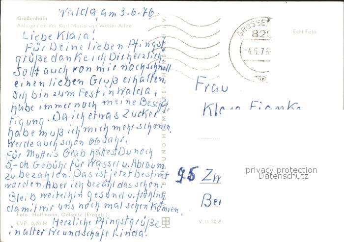 72043186 alte Postkarte Grossenhain Sachsen Anlagen an der Karl Maria von Weber Allee Springbrunnen postalisch gelaufen Erhaltung siehe scans KatCode: 11110014285100