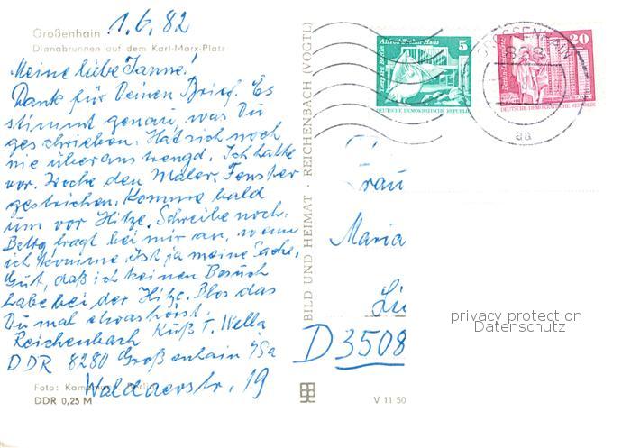 73801837 alte Postkarte Grossenhain Sachsen Dianabrunnen auf dem Karl Marx Platz postalisch gelaufen Erhaltung siehe scans [WerneD78] KatCode: 11110014285100