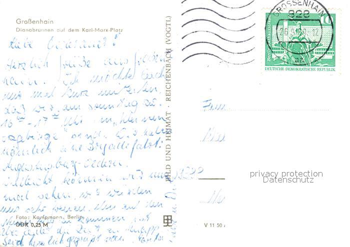 73032516 alte Postkarte Grossenhain Sachsen Dianabrunnen Karl Marx Platz postalisch gelaufen Erhaltung siehe scans [WerneD78] KatCode: 11110014285100