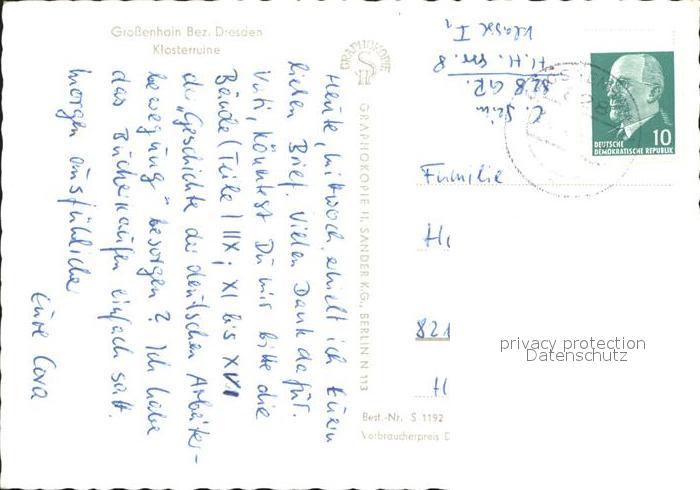 72366767 alte Postkarte Grossenhain Sachsen Klosterruine postalisch gelaufen Erhaltung siehe scans KatCode: 11110014285100