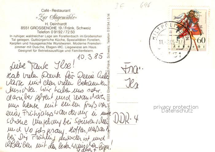 73569794 alte Postkarte Grossenohe Forchheim Oberfranken Cafe Restaurant Zur Saegemuehle Gaststube Felsformation postalisch gelaufen Erhaltung siehe scans [WerneD78] KatCode: 11110009474138