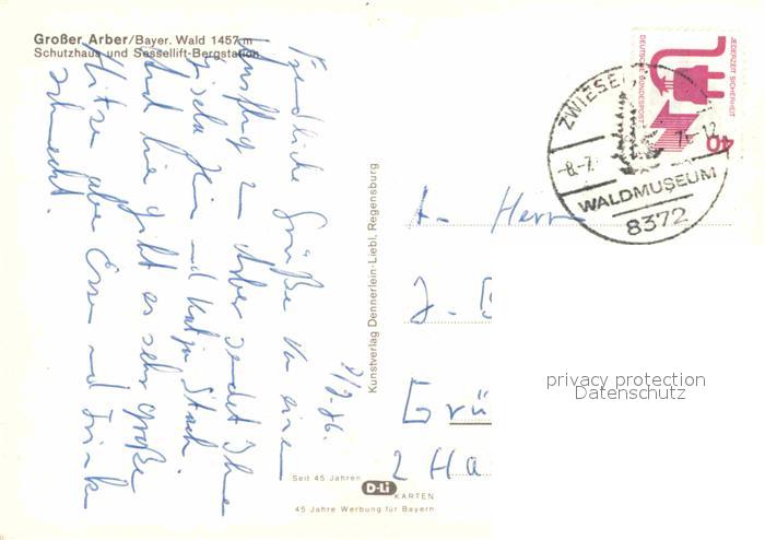 72868796 alte Postkarte Grosser Arber Arberschutzhaus mit Sessellift Bergstation postalisch gelaufen Erhaltung siehe scans [FriedD77] KatCode: 11110009276115