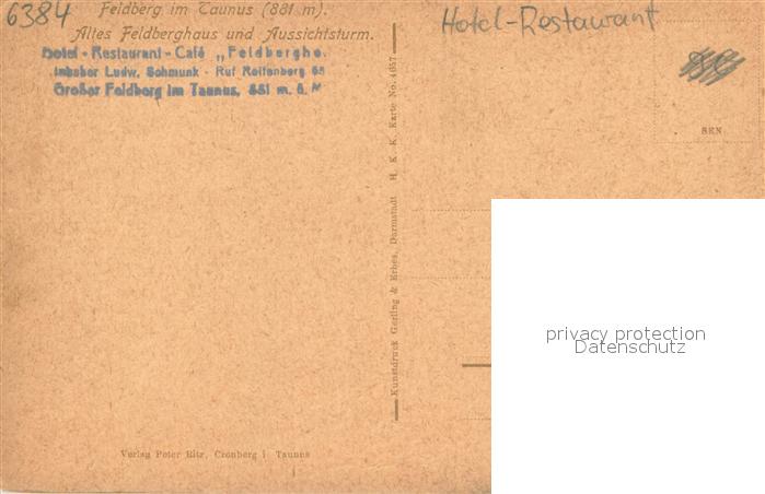 73692705 Grosser Feldberg Taunus Altes Feldberghaus und Aussichtsturm Kuenstlerkarte postalisch nicht gelaufen Erhaltung siehe scans [FriedD77] KatCode: 11110006434009