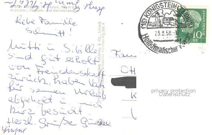 73764597 alte Postkarte Grosser Feldberg Taunus Aussichts Fernseh und Fernmeldeturm Fliegeraufnahme postalisch gelaufen Erhaltung siehe scans [WerneD78] KatCode: 11110006434009