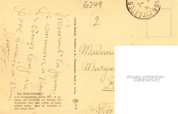 73696343 alte Postkarte Grosser Feldberg Taunus Brunhildisfelsen postalisch gelaufen Erhaltung siehe scans [FriedD77] KatCode: 11110006434009