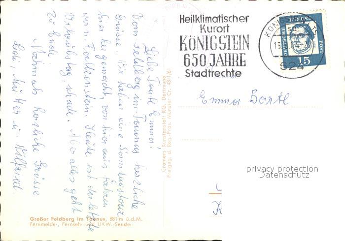 71940350 alte Postkarte Grosser Feldberg Taunus Fernmelde- Fernseh- UKW Sender postalisch gelaufen Erhaltung siehe scans KatCode: 11110006434009