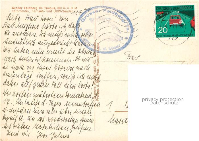 73780096 alte Postkarte Grosser Feldberg Taunus Fernmelde- Fernseh- und UKW-Sender postalisch gelaufen Fliegeraufnahme Erhaltung siehe scans [FriedD77] KatCode: 11110006434009