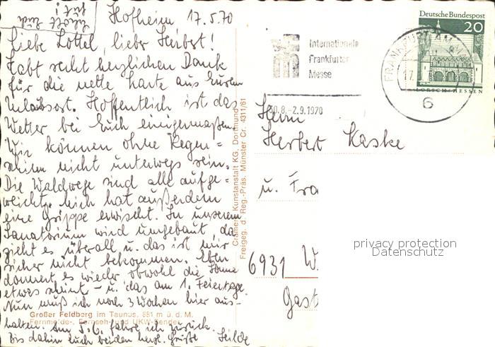 72572756 alte Postkarte Grosser Feldberg Taunus Fernmeldeturm postalisch gelaufen Erhaltung siehe scans [AndreD76] KatCode: 11110006434009
