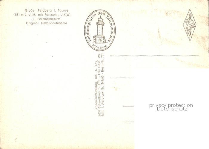 72016654 Grosser Feldberg Taunus Fernmeldeturm Fliegeraufnahme postalisch nicht gelaufen Erhaltung siehe scans KatCode: 11110006434009