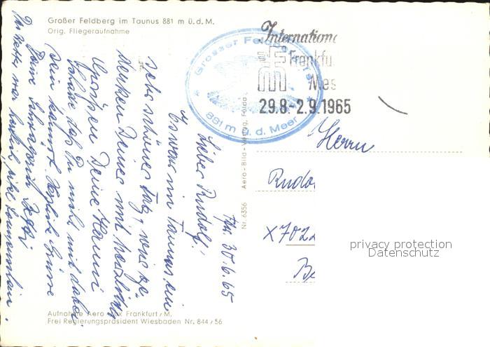 72535514 alte Postkarte Grosser Feldberg Taunus Fliegeraufnahme postalisch gelaufen Erhaltung siehe scans [AndreD76 kt121box] KatCode: 11110006434009