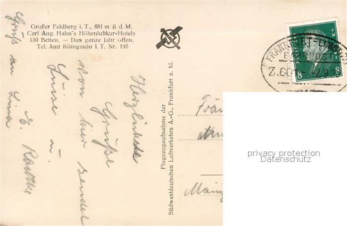 73545599 alte Postkarte Grosser Feldberg Taunus Fliegeraufnahme postalisch gelaufen Bahnpost Erhaltung siehe scans [KathaD81] KatCode: 11110006434009