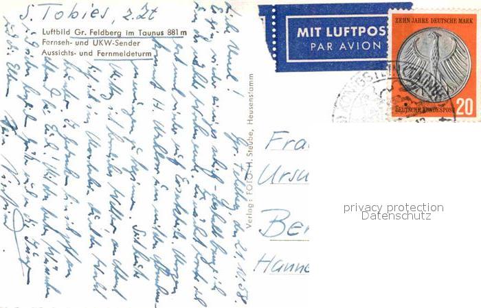 72889633 alte Postkarte Grosser Feldberg Taunus Fliegeraufnahme Aussichts- und Fernmeldeturm postalisch gelaufen Erhaltung siehe scans [AndreD76] KatCode: 11110006434009
