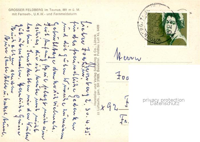 73101725 alte Postkarte Grosser Feldberg Taunus Fliegeraufnahme mit Fernseh UKW und Fernmeldeturm postalisch gelaufen Erhaltung siehe scans [WerneD78] KatCode: 11110006434009