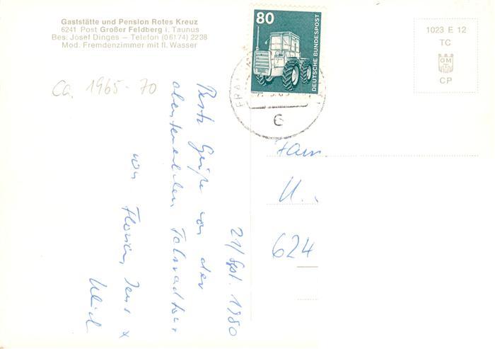 73875049 alte Postkarte Grosser Feldberg Taunus Gaststaette Pension Rotes Kreuz postalisch gelaufen Erhaltung siehe scans [FriedD77] KatCode: 11110006434009