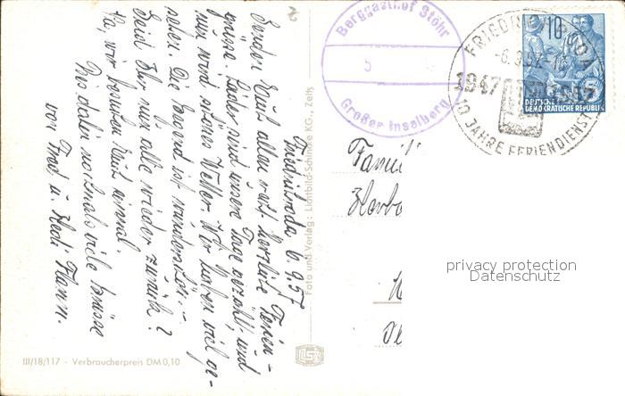 alte Postkarte Grosser Inselsberg postalisch gelaufen Erhaltung siehe scans