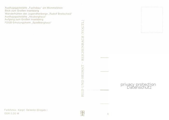 72919553 Grosser Inselsberg Ausflugsziele Gaststaette Mommelstein Wanderhuetten Jugendherberge FDGB Erholungsheim postalisch nicht gelaufen Erhaltung siehe scans [FriedD77] KatCode: 11110016066014