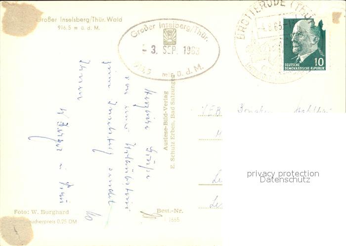 72508657 alte Postkarte Grosser Inselsberg Aussichtsturm Sender Berghaus postalisch gelaufen Erhaltung siehe scans KatCode: 11110016066014