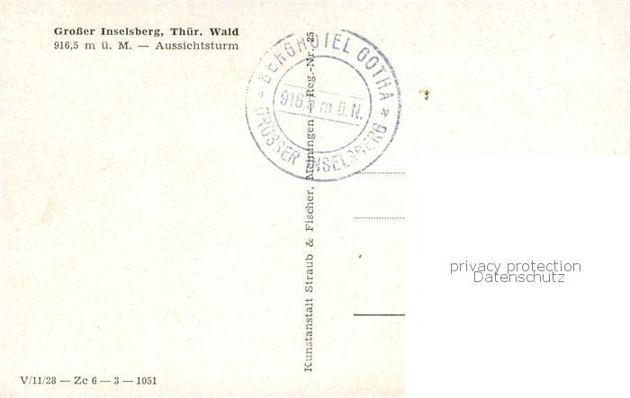 73753038 Grosser Inselsberg Aussichtsturm postalisch nicht gelaufen Erhaltung siehe scans [FriedD77] KatCode: 11110016066014